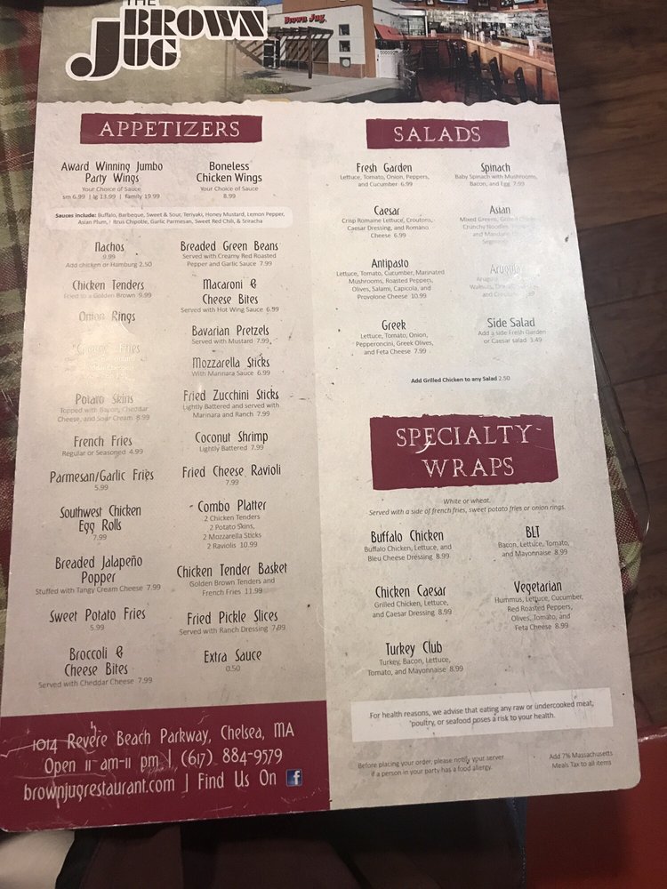 Introducing "The Brown Jug," a vibrant sports bar and pizzeria nestled in Chelsea, MA. Known for its award-winning jumbo chicken wings, this locale strikes the perfect balance between casual dining and lively entertainment. The menu is a delightful blend of traditional favorites and innovative offerings, ensuring something for everyone.